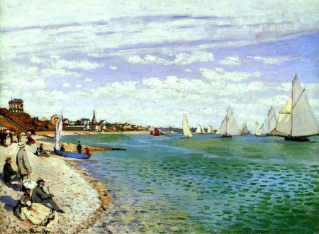 Claude Monet es de aquellos pintores que, cuanto más te alejas del cuadro, más claro empiezas a ver el conjunto; pero a medida que te acercas puedes ver los brochazos del pincel, la pintura casi en relieve. De tal forma que si pasáramos nuestra mano por el lienzo notariamos la pintura emplastada, una masa desigual que no parece decirnos nada, pero que bañada de luz y a la distancia adecuada nos mostrará una obra de arte, una captura de la retina del artista única e irrepetible en su conjunción con la madre naturaleza. En esta serie sobre paisajes de Sainte-Adresse el pintor no da una muestra de su arte y maestría a la hora de pintar el mar. Si con Turner podíamos encontrar el atardecer de nuestras vidas, seguro que con Monet podemos encontrar el oceáno que siempre soñamos.